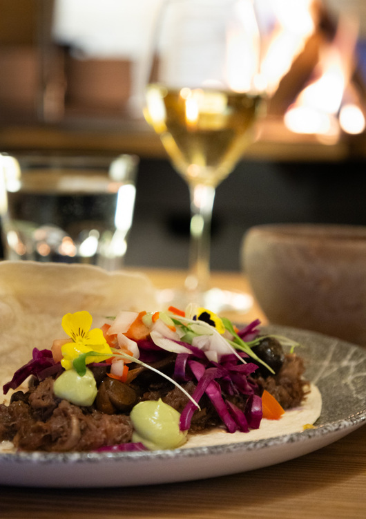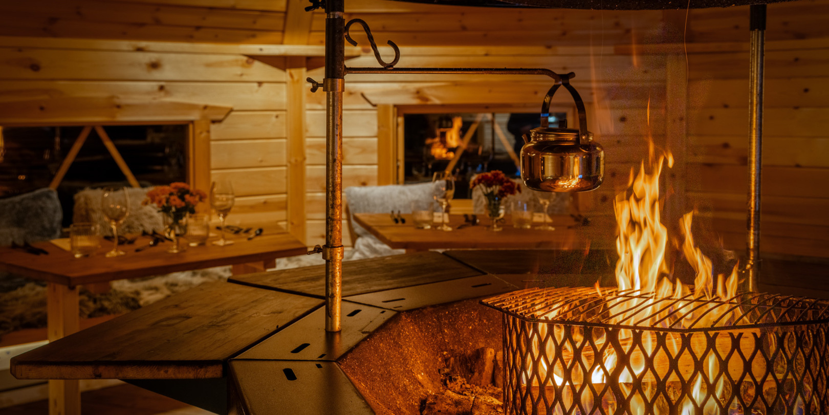 Experience the Nordic kitchen at our restaurant and enjoy the show where our chef cooks on an open fire right in front you. Our restaurant is all about appreciating the Finnish culinary heritage of cooking with fire, but also experiencing the food with all your senses. From handpicked berries to locally caught fish - taste the authenticity that local ingredients bring to every bite.